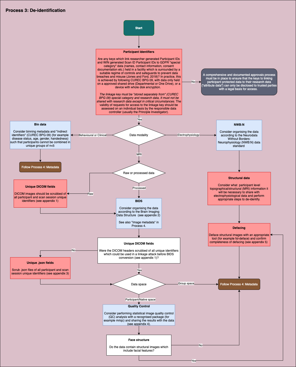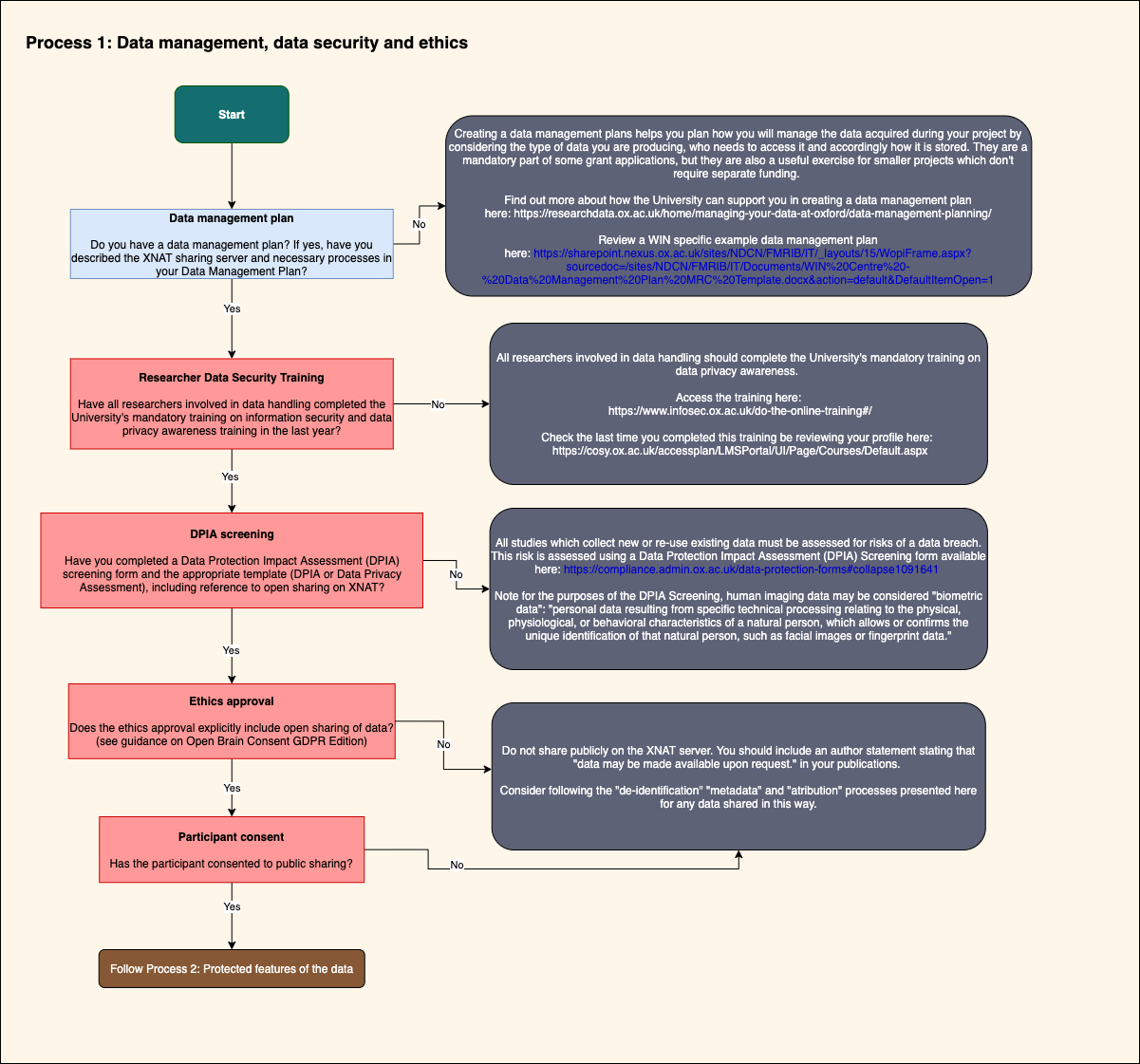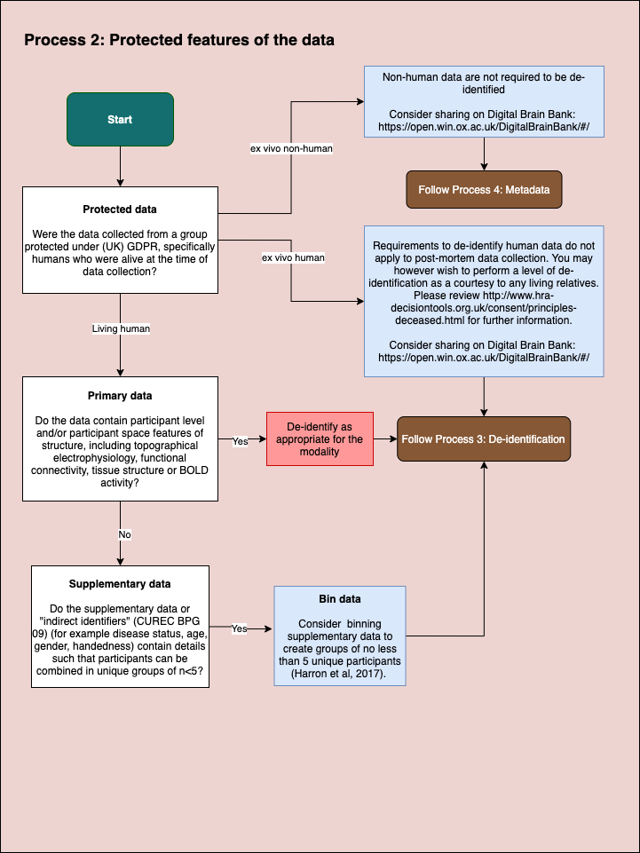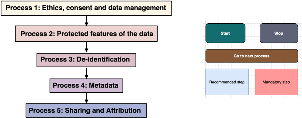 Each process has both “recommended” and “mandatory” steps. Mandatory steps fulfil your requirements according to University and GDPR. Following the recommended steps brings your project into alignment with the growing consensus for data sharing according to the FAIR principles